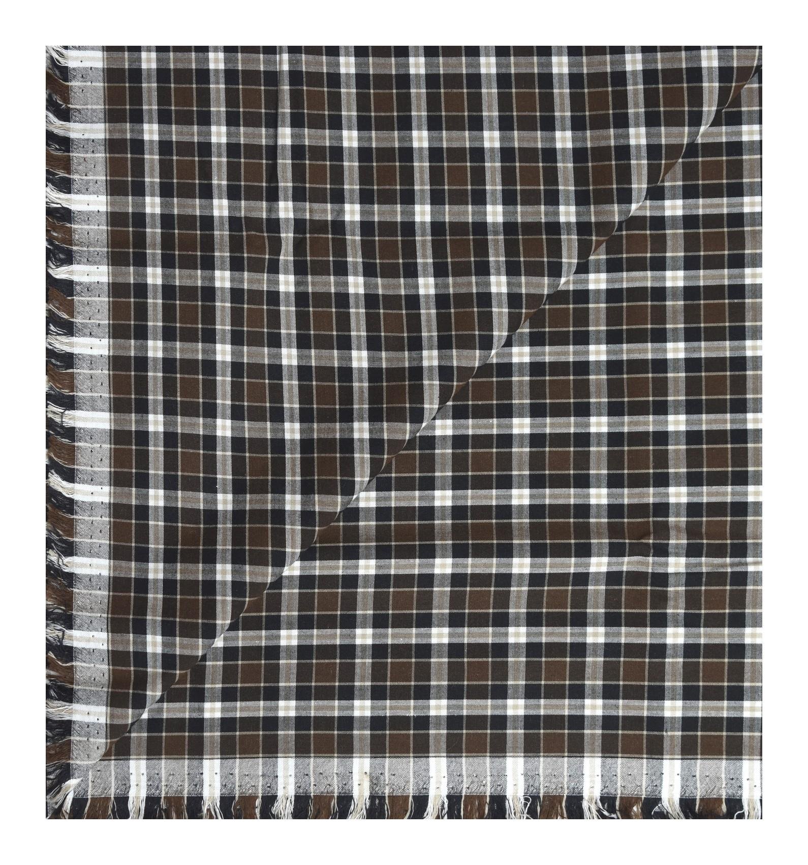 J. Hampstead 100% Giza Cotton Brown Checkered Shirt Fabric 1.6 Mts / VV1194