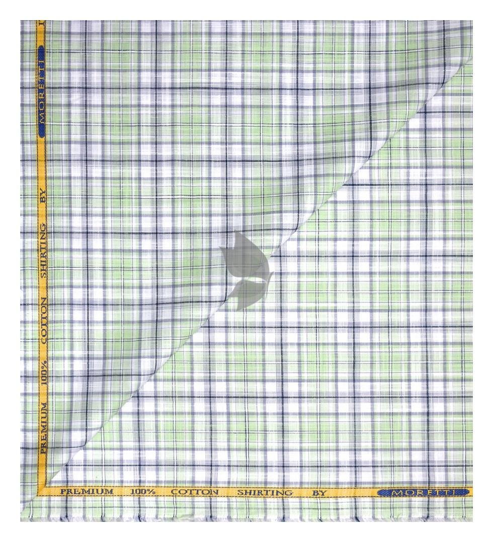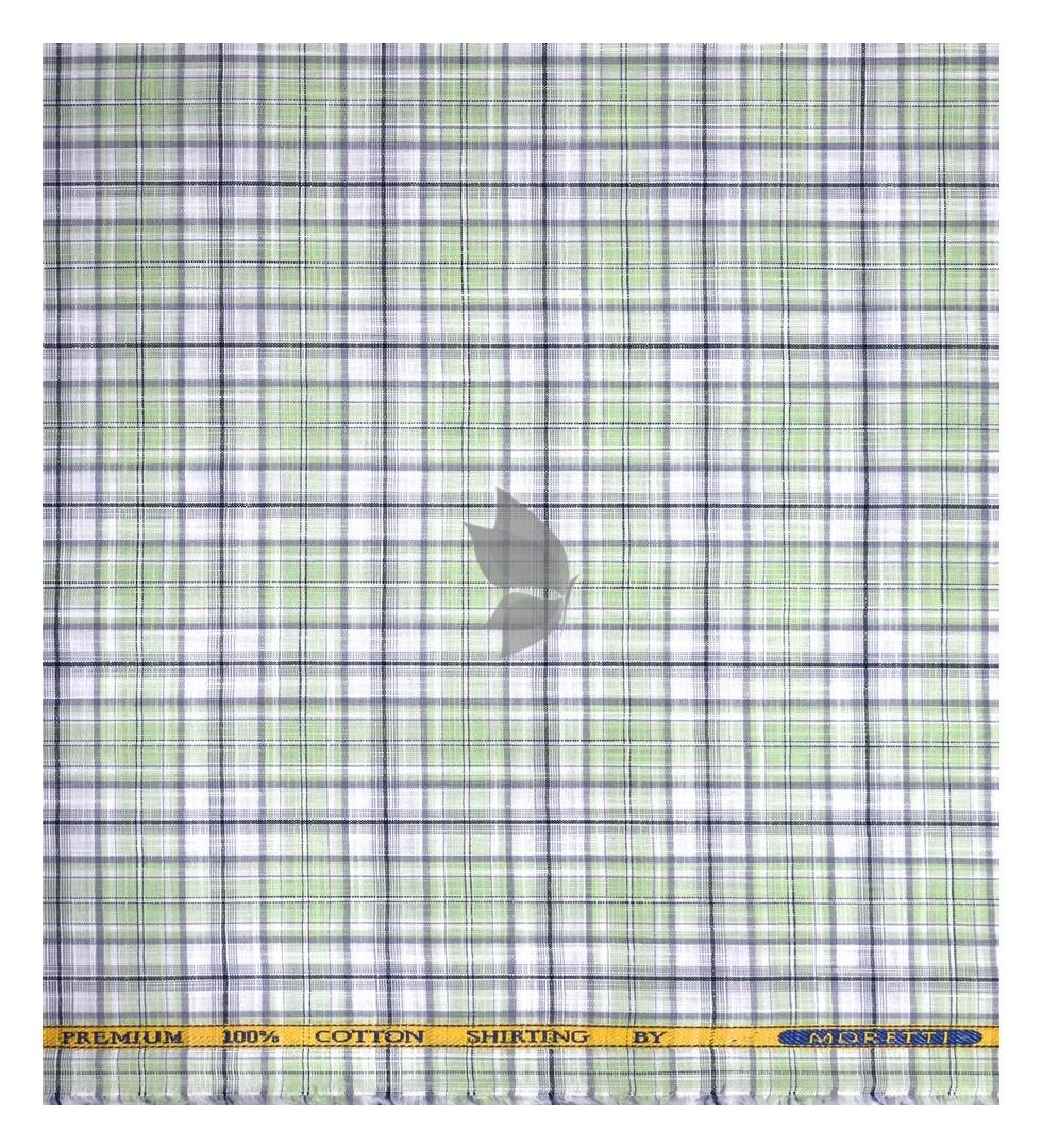 | J.Hampstead Moretti Premium Collection with 100% Giza Cotton Green colour Checkered Pattern Unstitched Shirt Fabric of 1.6 mts - Made In Italy / VV2539 |