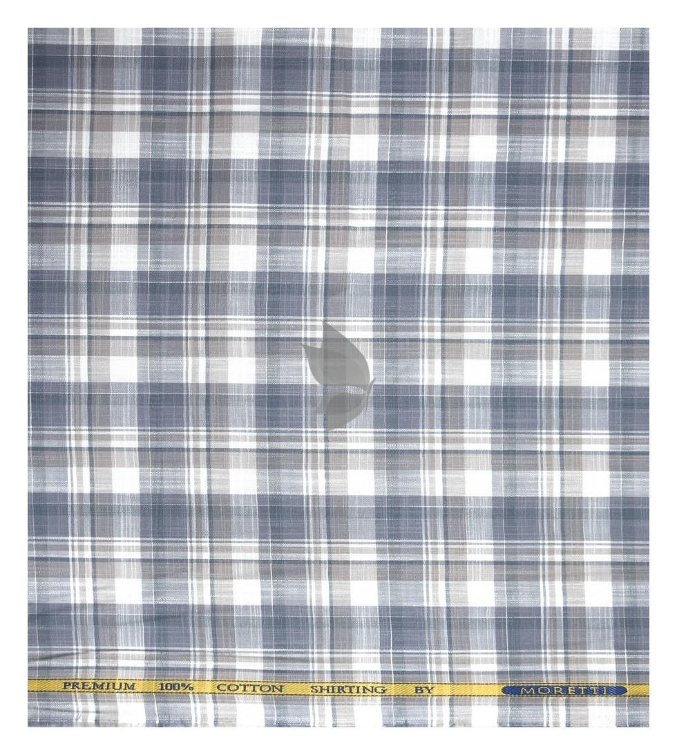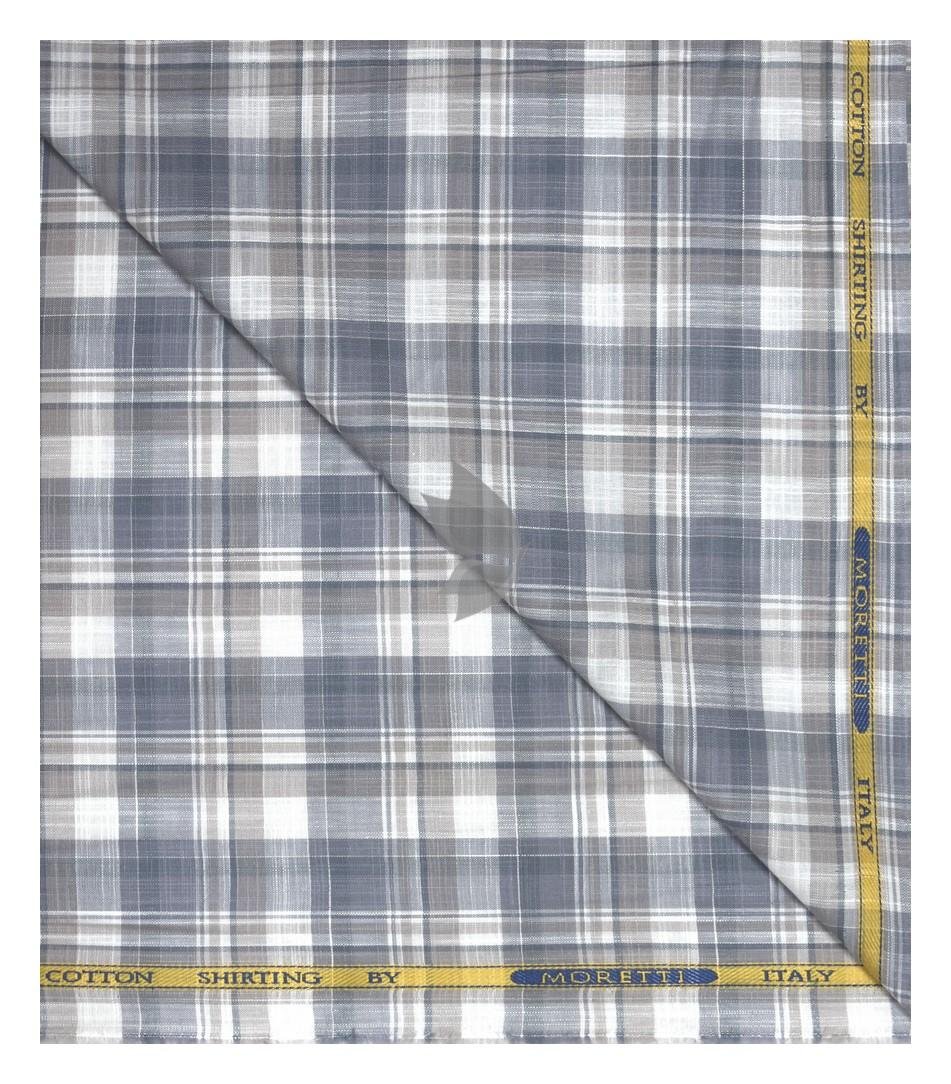 | J.Hampstead Moretti Premium Collection with 100% Giza Cotton Grey colour Checkered Pattern Unstitched Shirt Fabric of 1.6 mts - Made In Italy / VV2544 |