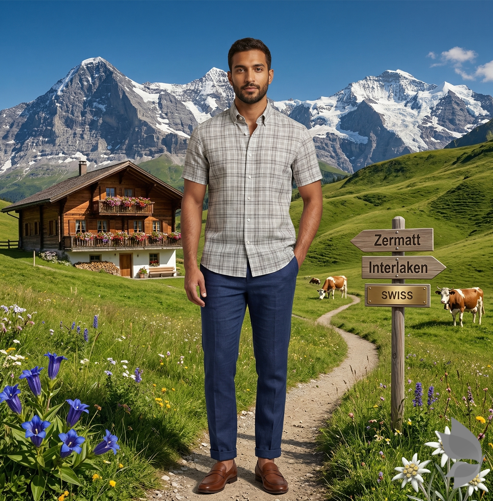 | J.Hampstead Moretti Premium Collection with 100% Giza Cotton Grey (Tan) colour Checkered Pattern Unstitched Shirt Fabric of 1.6 mts - Made In Italy / VV2540 |