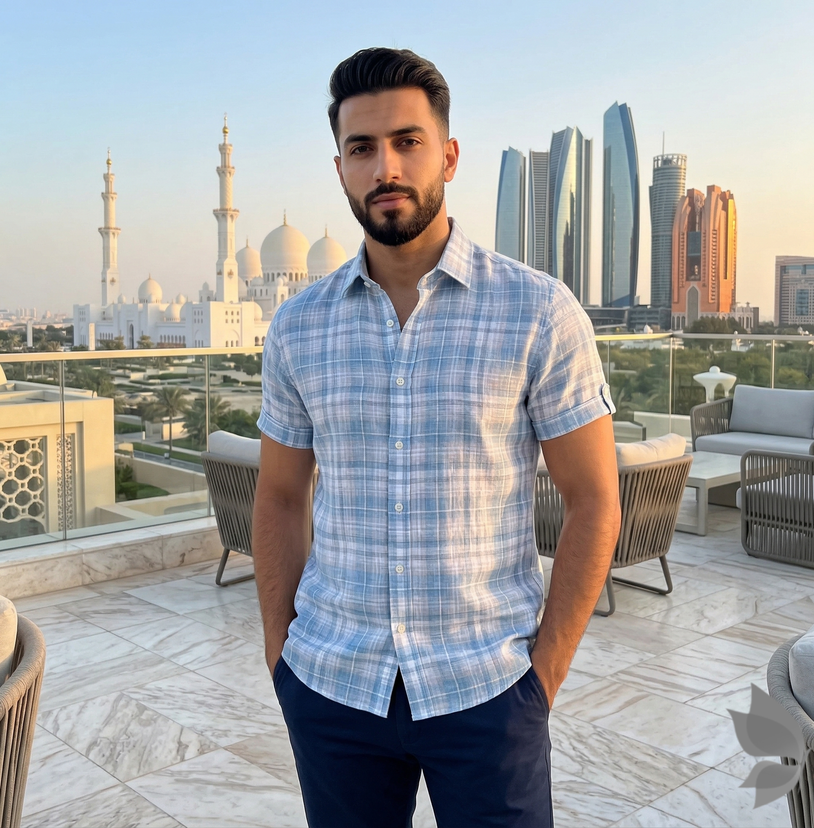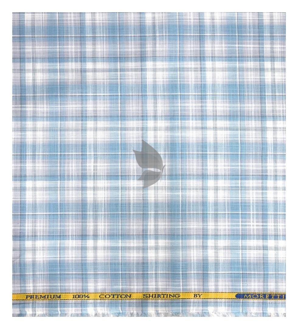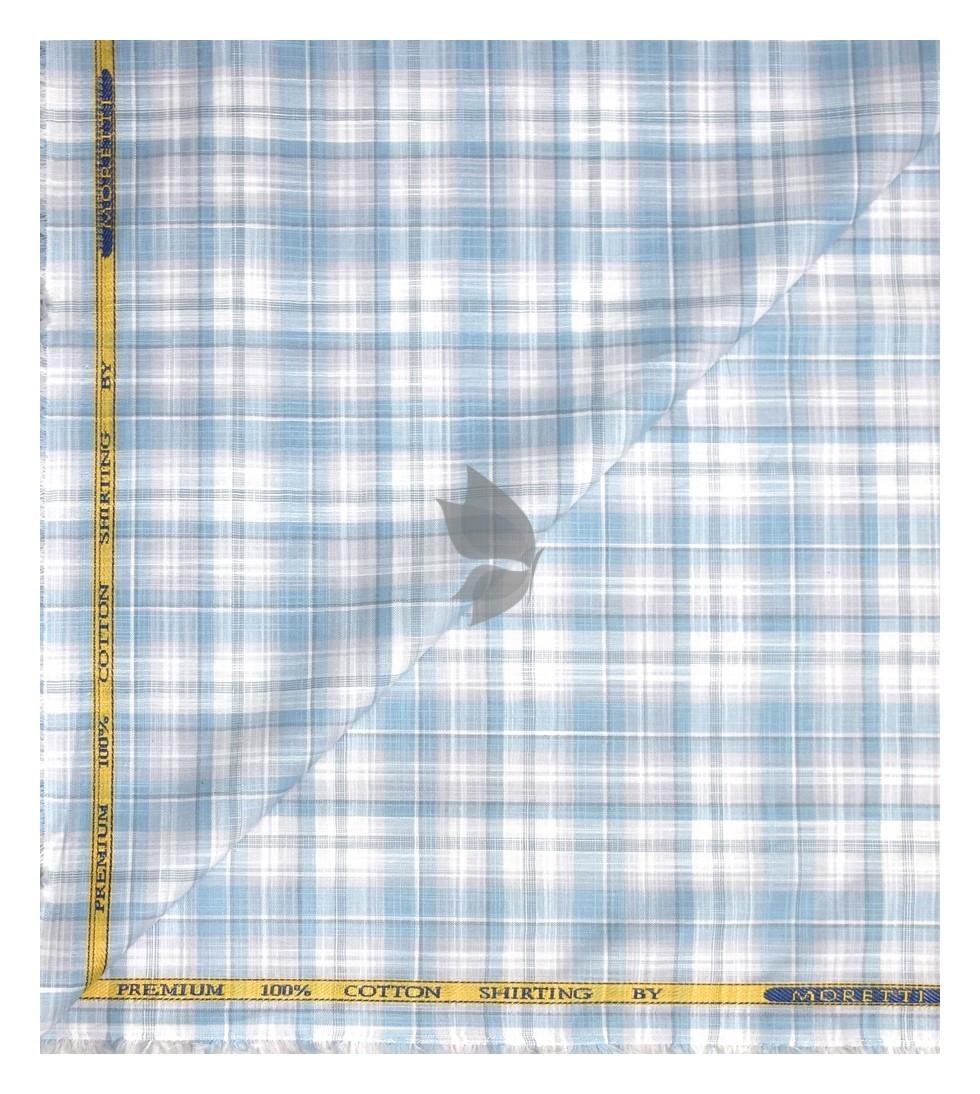 | J.Hampstead Moretti Premium Collection with 100% Giza Cotton Light Blue (Pale Blue) Checkered Pattern Unstitched Shirt Fabric of 1.6 mts - Made In Italy / VV2538 |