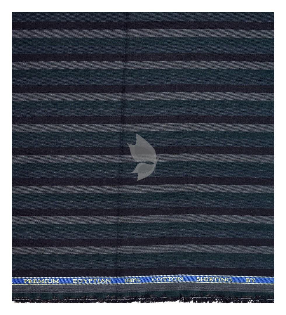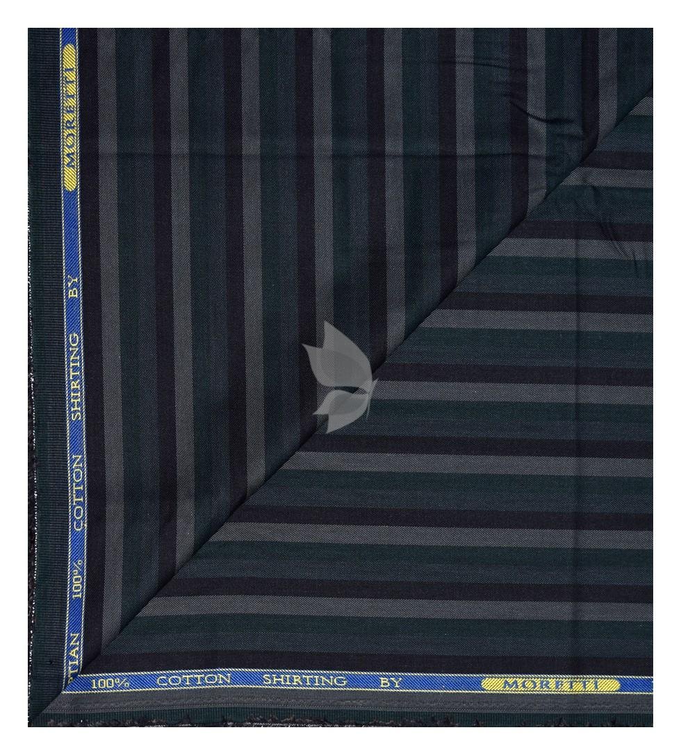 | J.Hampstead Moretti Premium Egyptian Collection with 100% Giza Cotton Green Colour Striped Pattern Unstitched Shirt Fabric of 1.6 mts - Made In Italy / VV2549 |