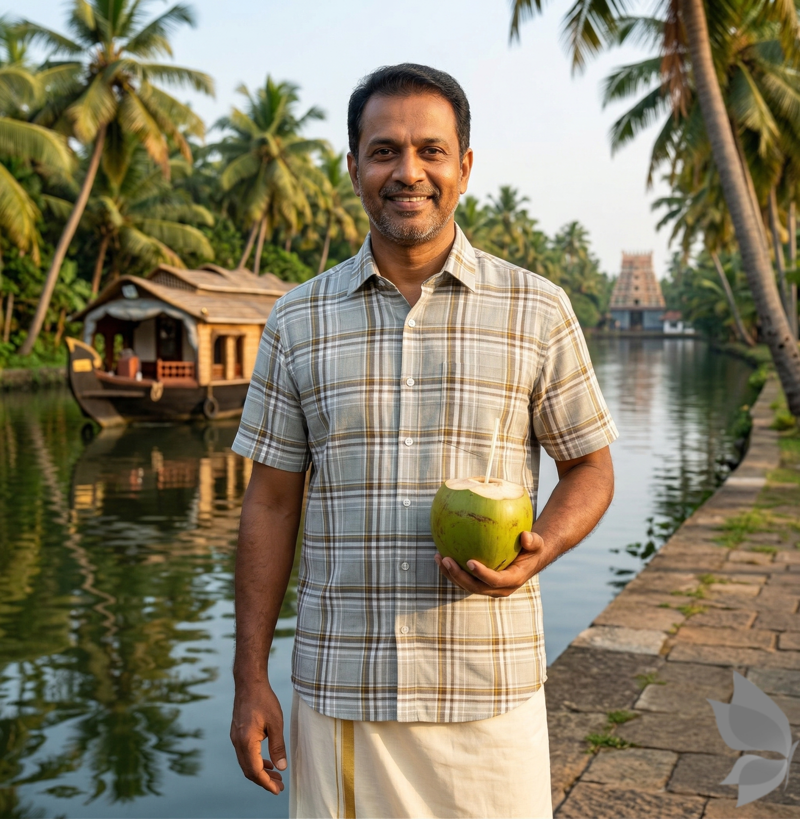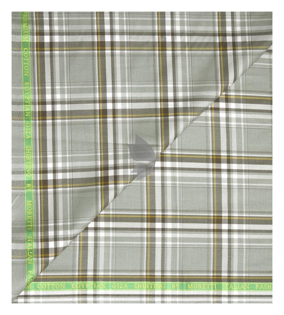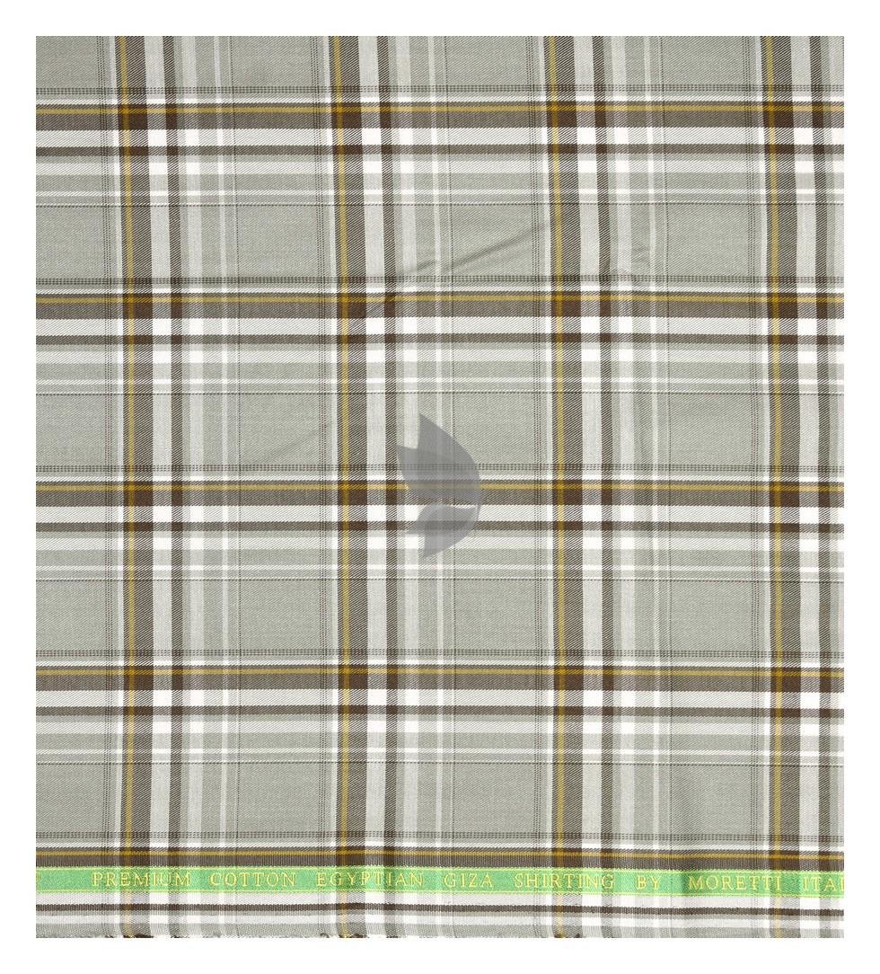 | J.Hampstead Moretti Premium Egyptian Collection with 100% Giza Cotton Green (Sage) Colour Checkered Pattern Unstitched Shirt Fabric of 1.6 mts - Made In Italy / VV2525 |