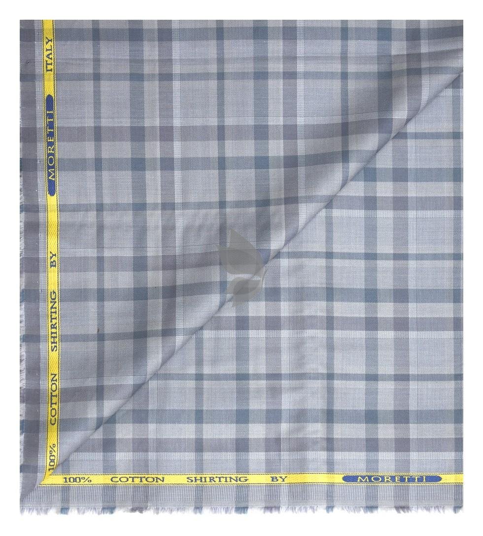 | J.Hampstead Moretti Premium Egyptian Collection with 100% Giza Cotton Grey Colour Checkered Pattern Unstitched Shirt Fabric of 1.6 mts - Made In Italy / VV2424 |