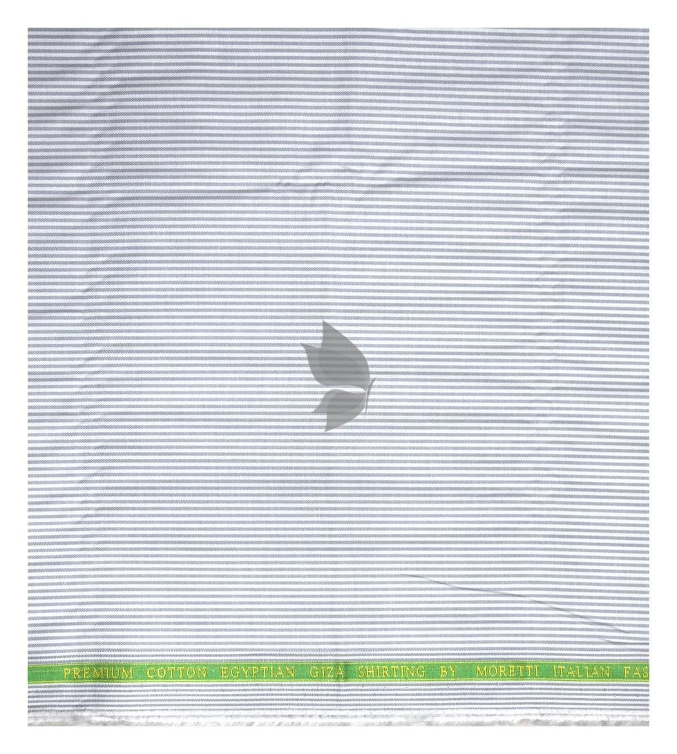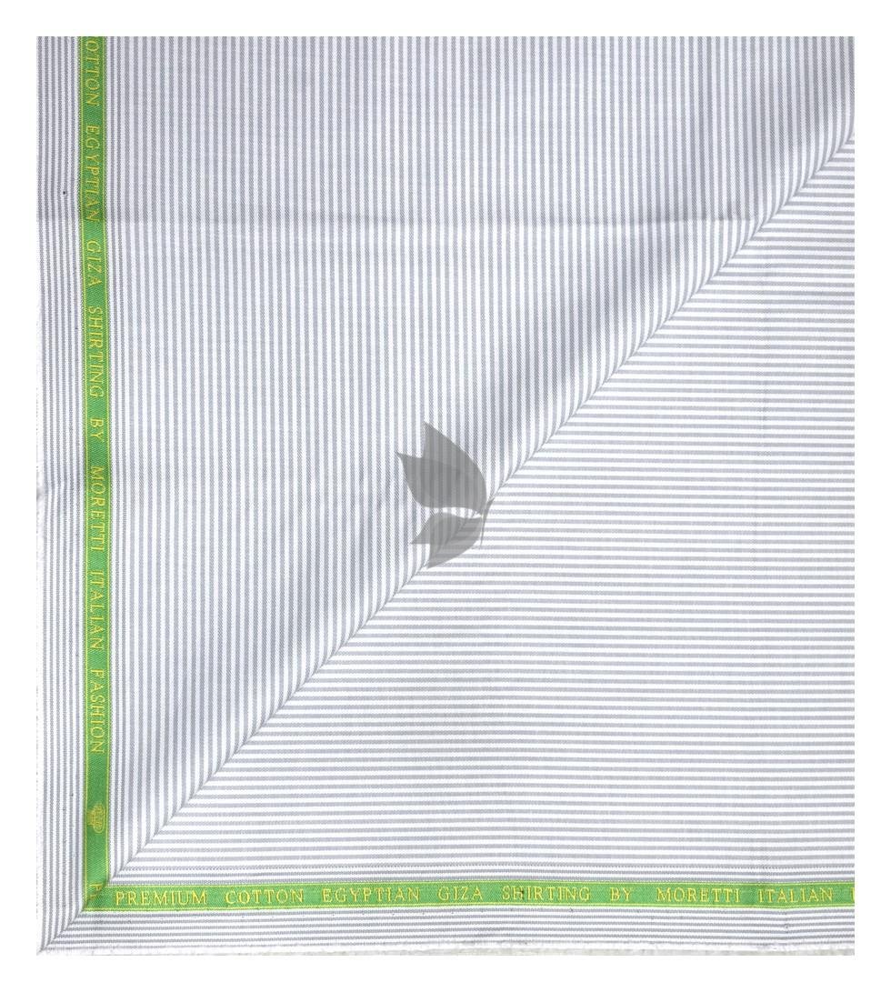 | J.Hampstead Moretti Premium Egyptian Collection with 100% Giza Cotton Grey Colour Striped Pattern Unstitched Shirt Fabric of 1.6 mts - Made In Italy / VV2554 |