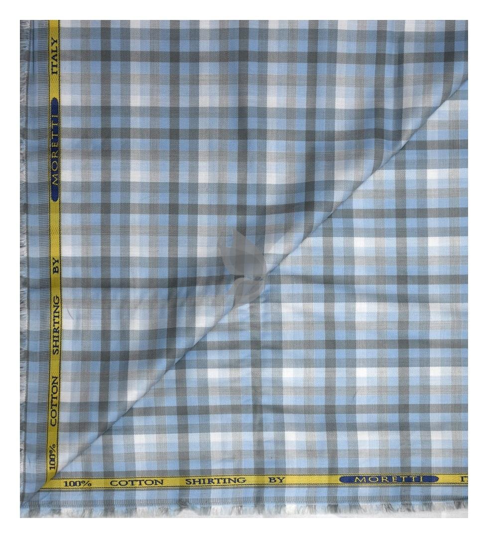 | J.Hampstead Moretti Premium Egyptian Collection with 100% Giza Cotton Multicolour Checkered Pattern Unstitched Shirt Fabric of 1.6 mts - Made In Italy / VV2426 |