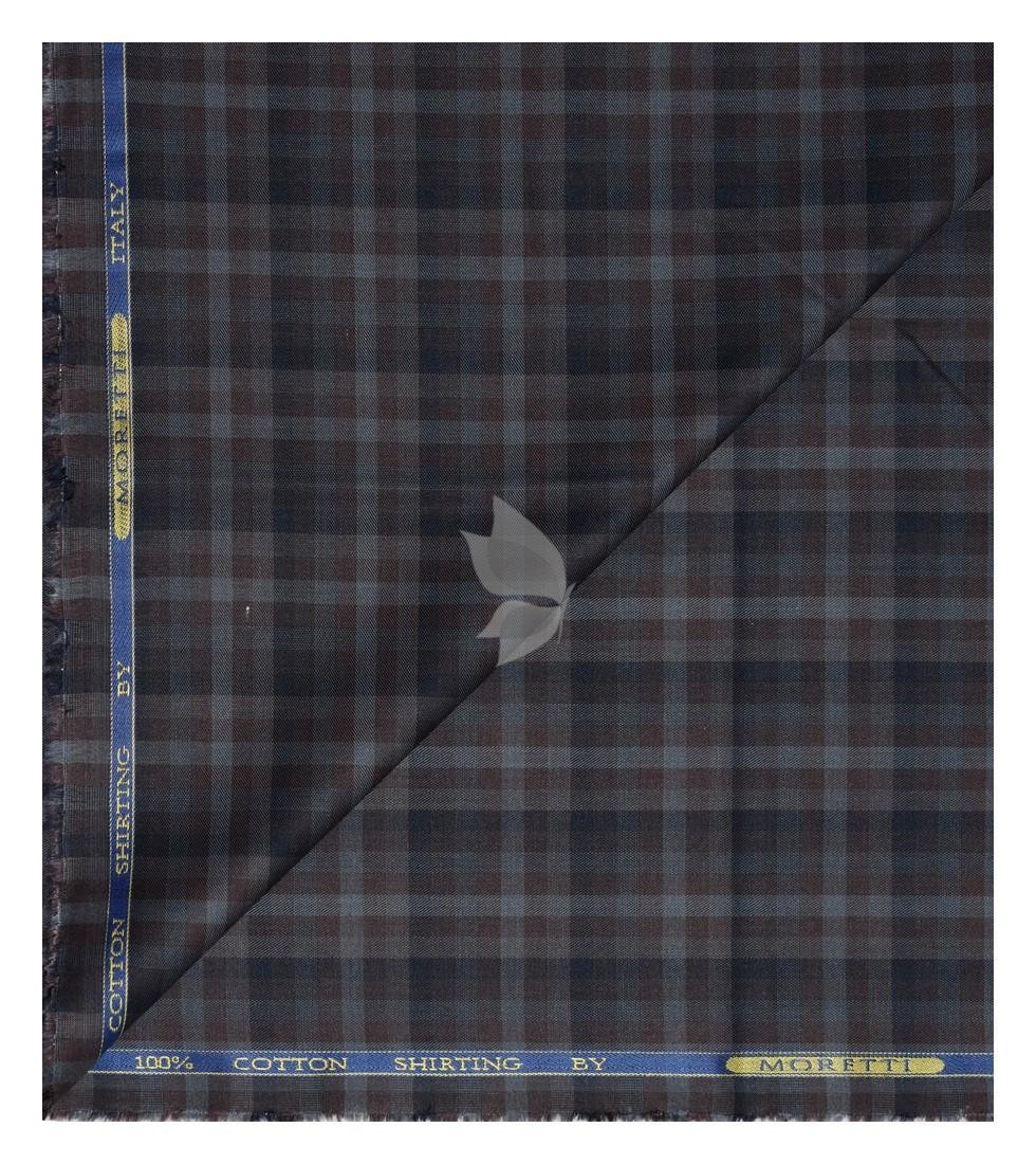 | J.Hampstead Moretti Premium Egyptian Collection with 100% Giza Cotton Multicolour Checkered Pattern Unstitched Shirt Fabric of 1.6 mts - Made In Italy / VV2536 |