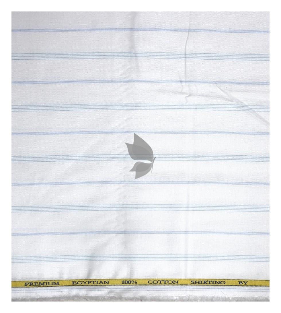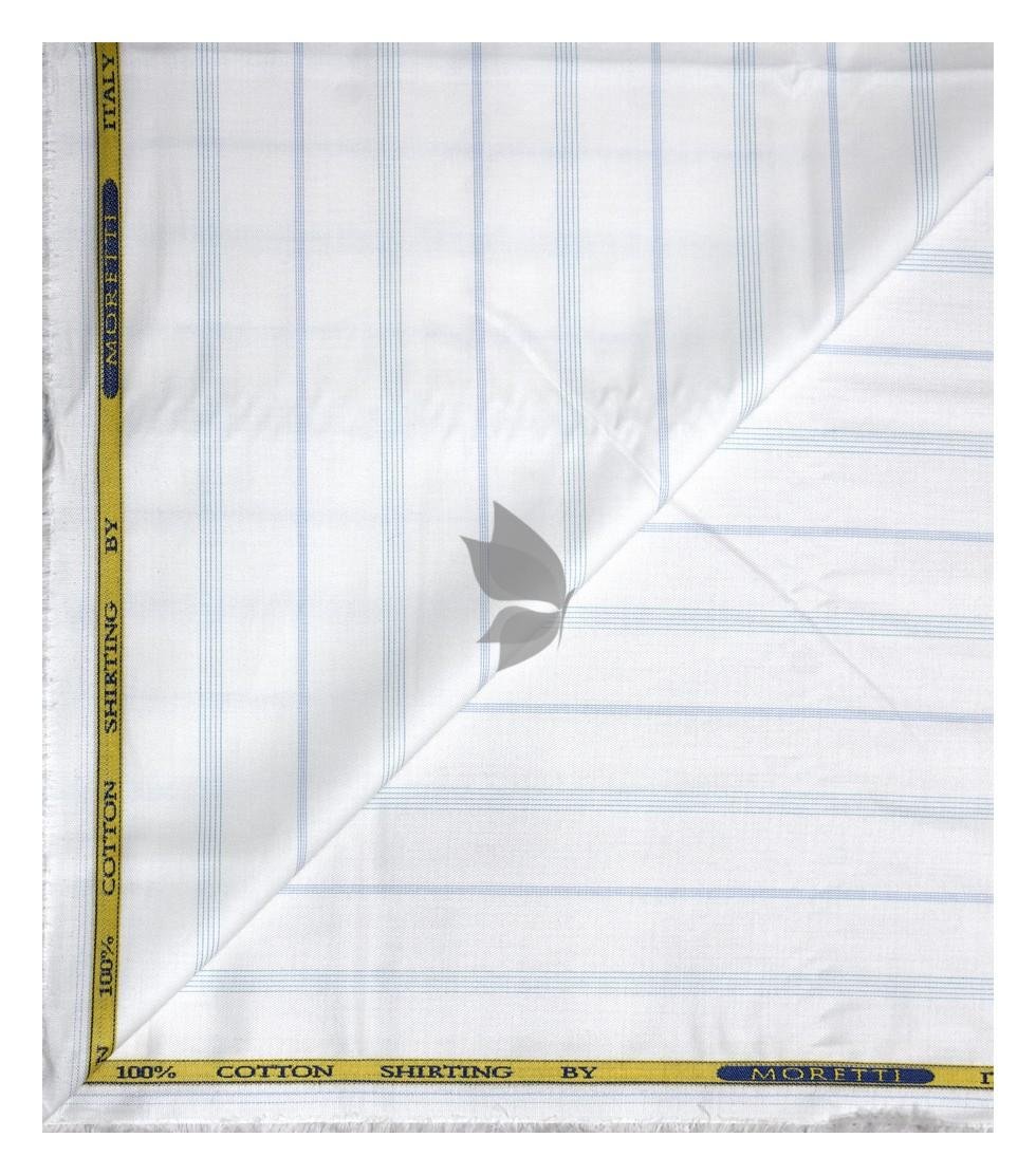 J.Hampstead Moretti Premium Egyptian Collection with 100% Giza Cotton White Colour Striped Pattern Unstitched Shirt Fabric of 1.6 mts - Made In Italy / VV2555