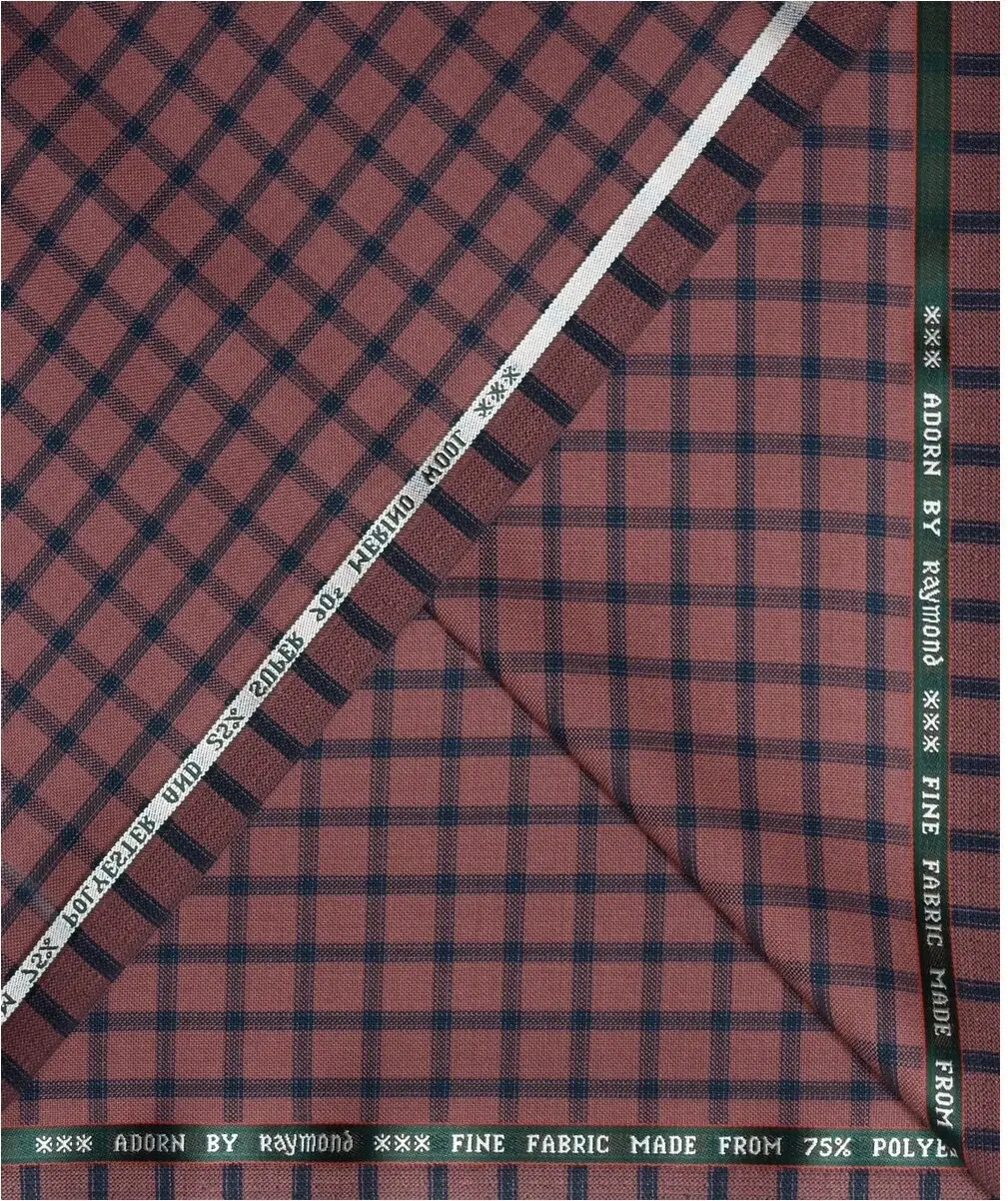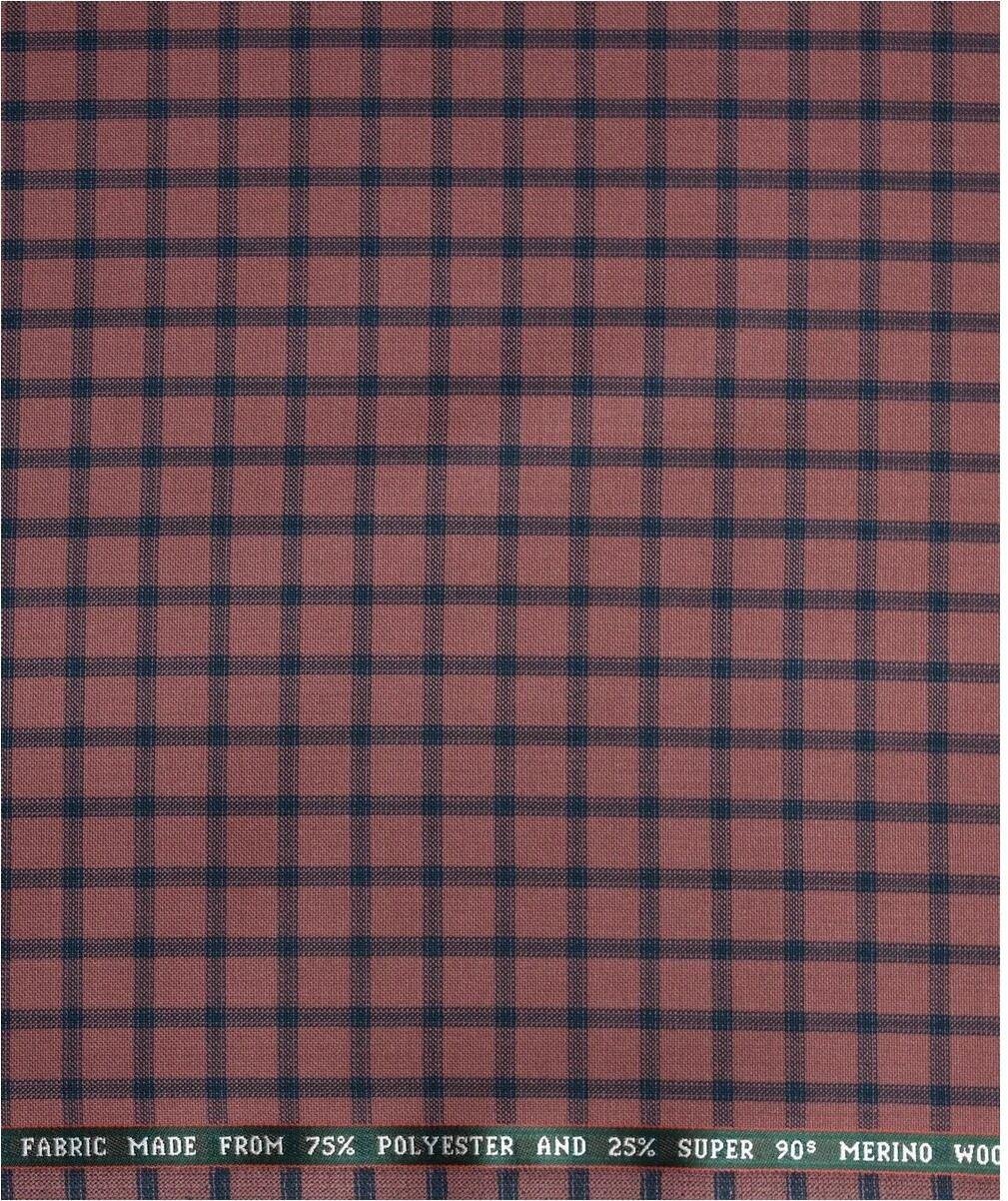Raymond Adorn Super 90's Merino Wool Peach checkered Suit Fabric-3.0 mts / VV6817