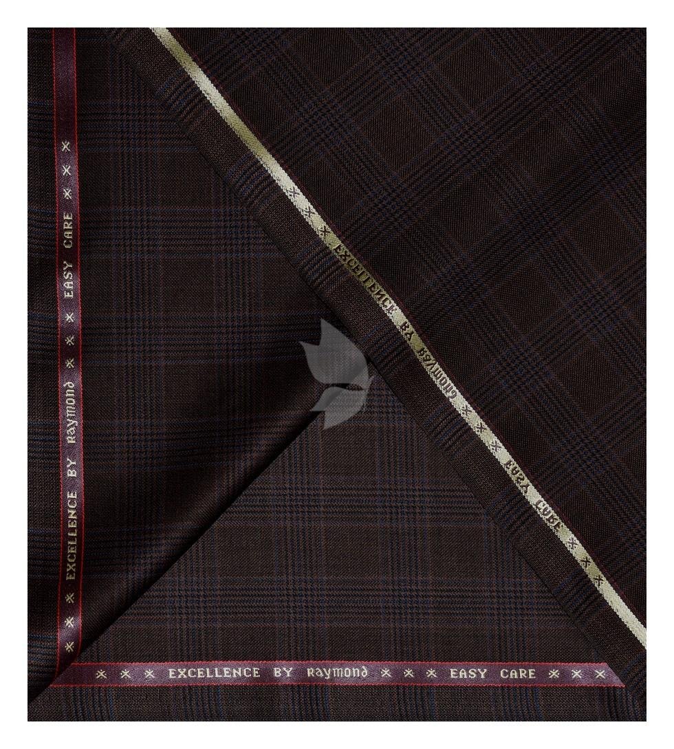 Raymond Australian Merino wool blend with "EXCELLENCE" named and Easy Care Brown colour Checkered Pattern Unstitched Suit Fabric of 3.25 meters / VV2602
