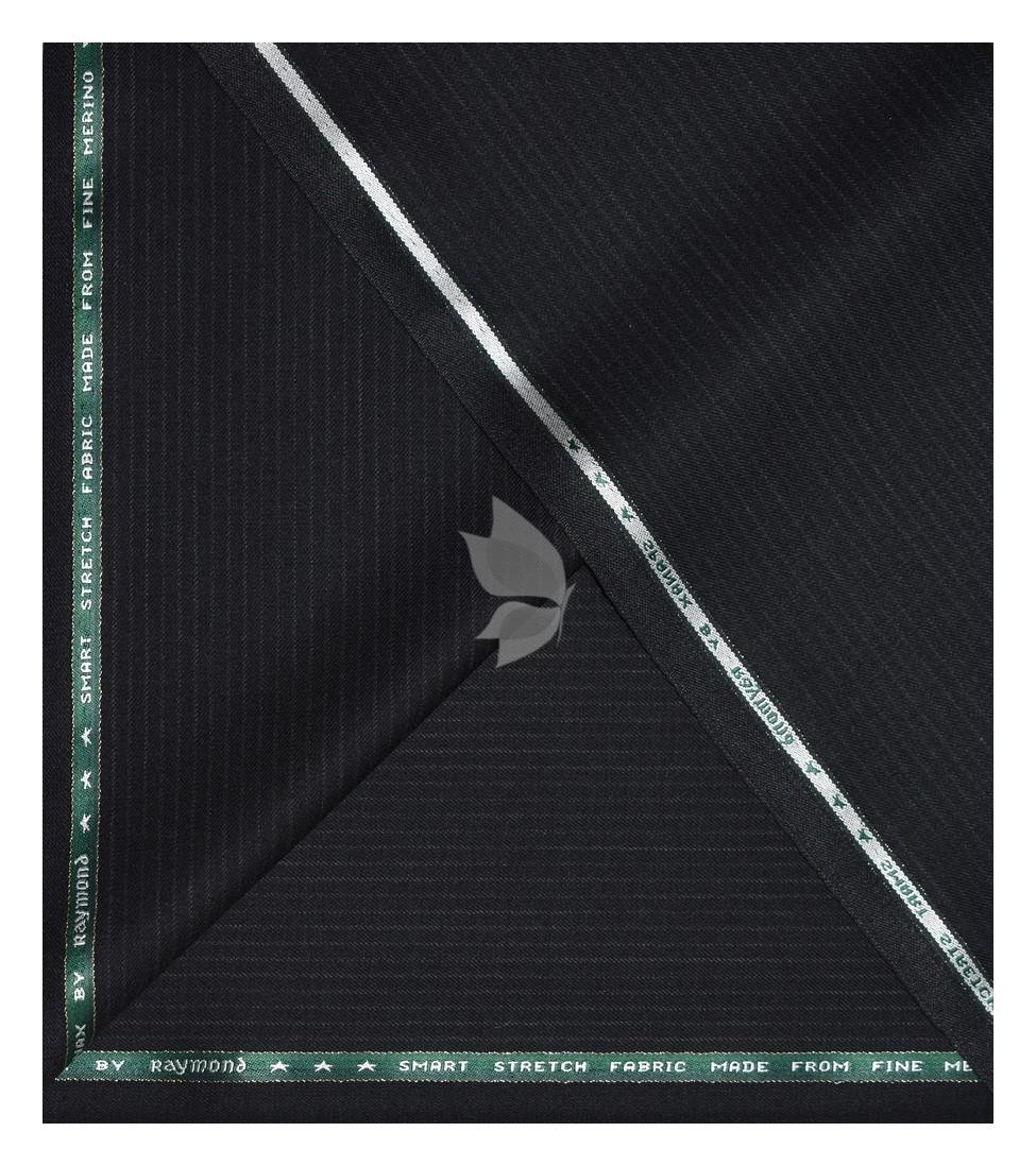 Raymond Australian Merino wool blend with Smart Stretch and made from Fine Merino Wool Striped Pattern Black colour Unstitched Suit Fabric of 3.25 meters / VV2594