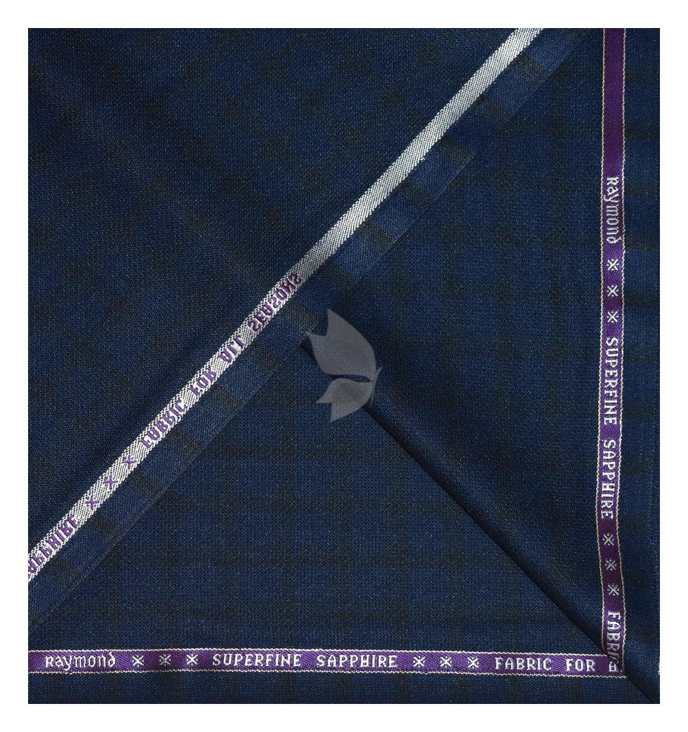 Raymond Australian Merino Wool blended Checkered pattern and Fabric for all Seasons Wear Navy Blue Colour Unstitched Suit Fabric of 3 Mts / VV2472