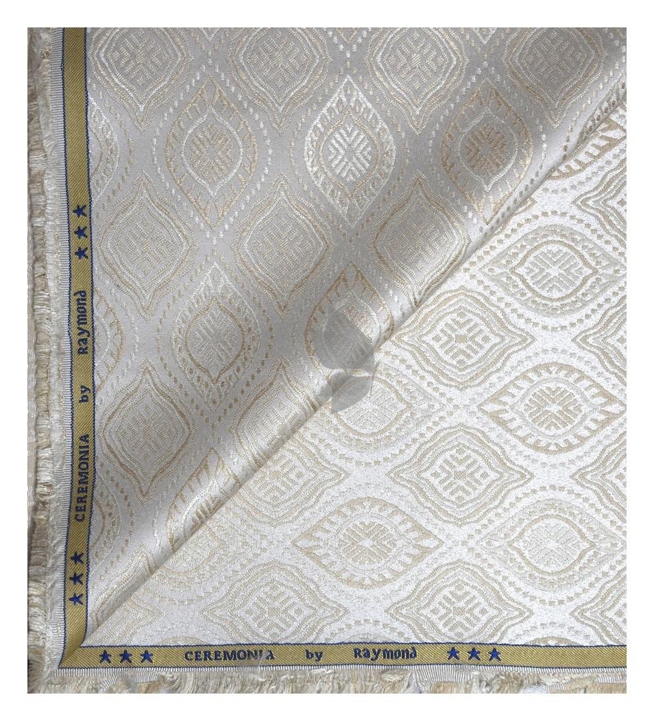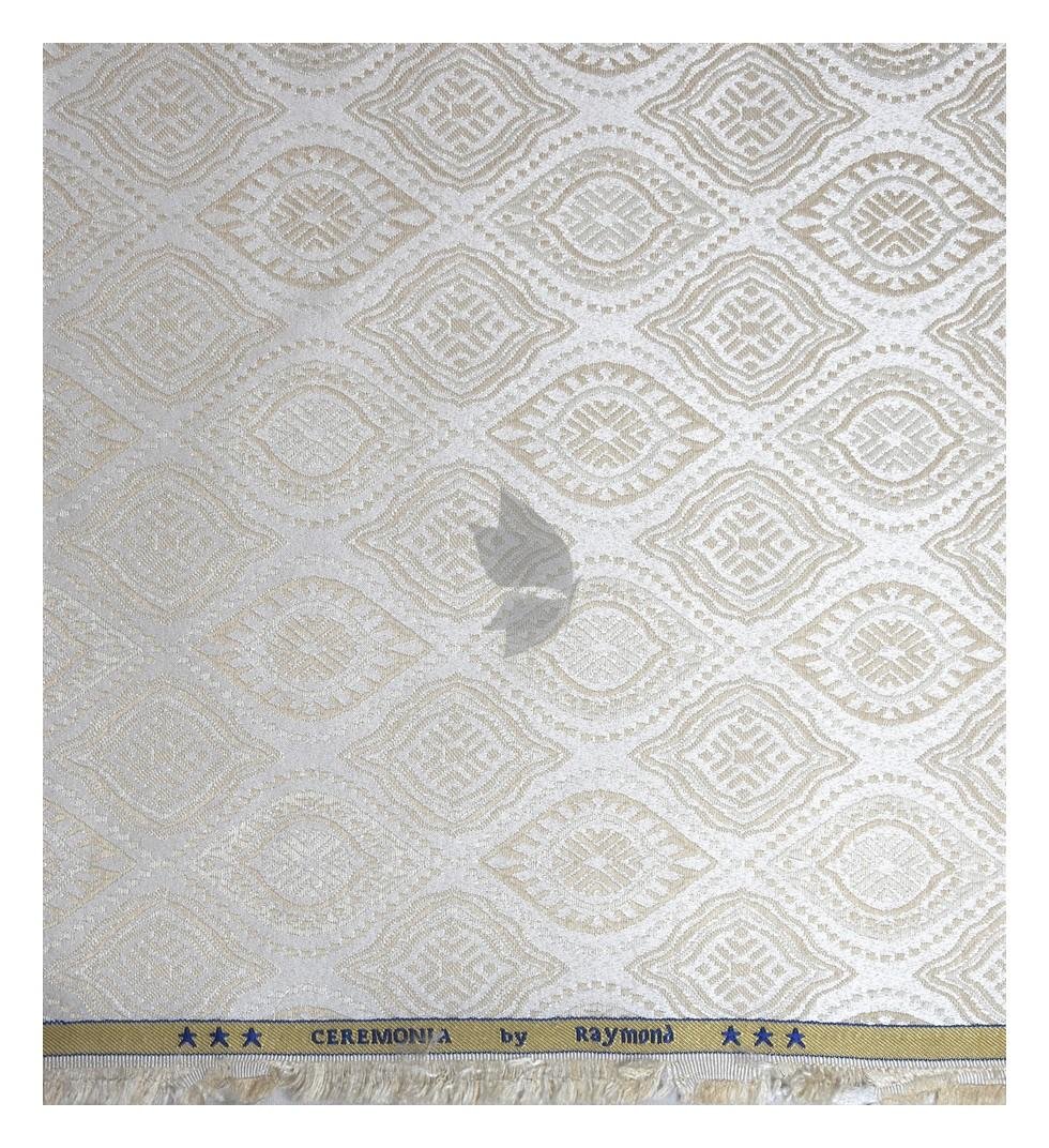 Raymond "CEREMONIA" Collection Wool Blended Beige with Jacquard and Geometrical design Unstitched Sherwani (Kurta) Fabric - 2.1 Mts / VV2143