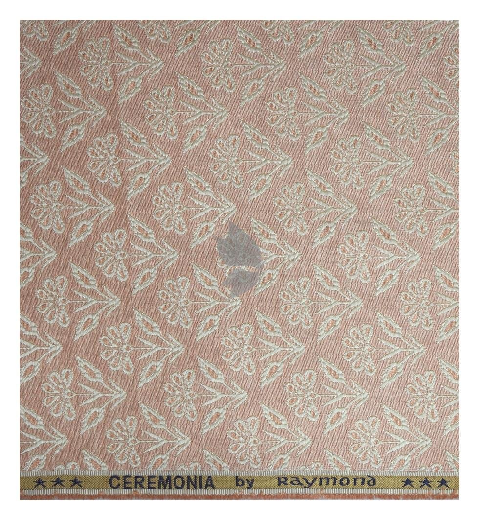 Raymond "CEREMONIA" Collection Wool Blended Peach with Jacquard and Floral design Unstitched Sherwani (Kurta) Fabric - 3 Mts / VV2145