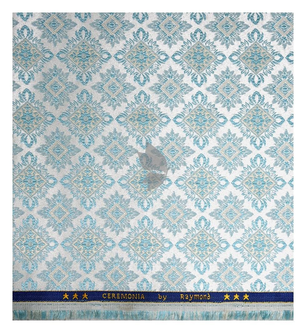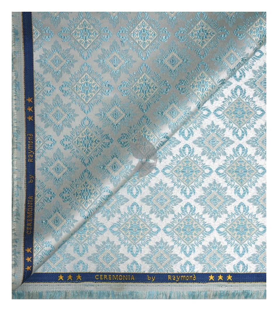 Raymond "CEREMONIA" Collection Wool Blended Sky Blue with Jacquard and Geometrical design Unstitched Sherwani (Kurta) Fabric - 2.2 Mts / VV2142