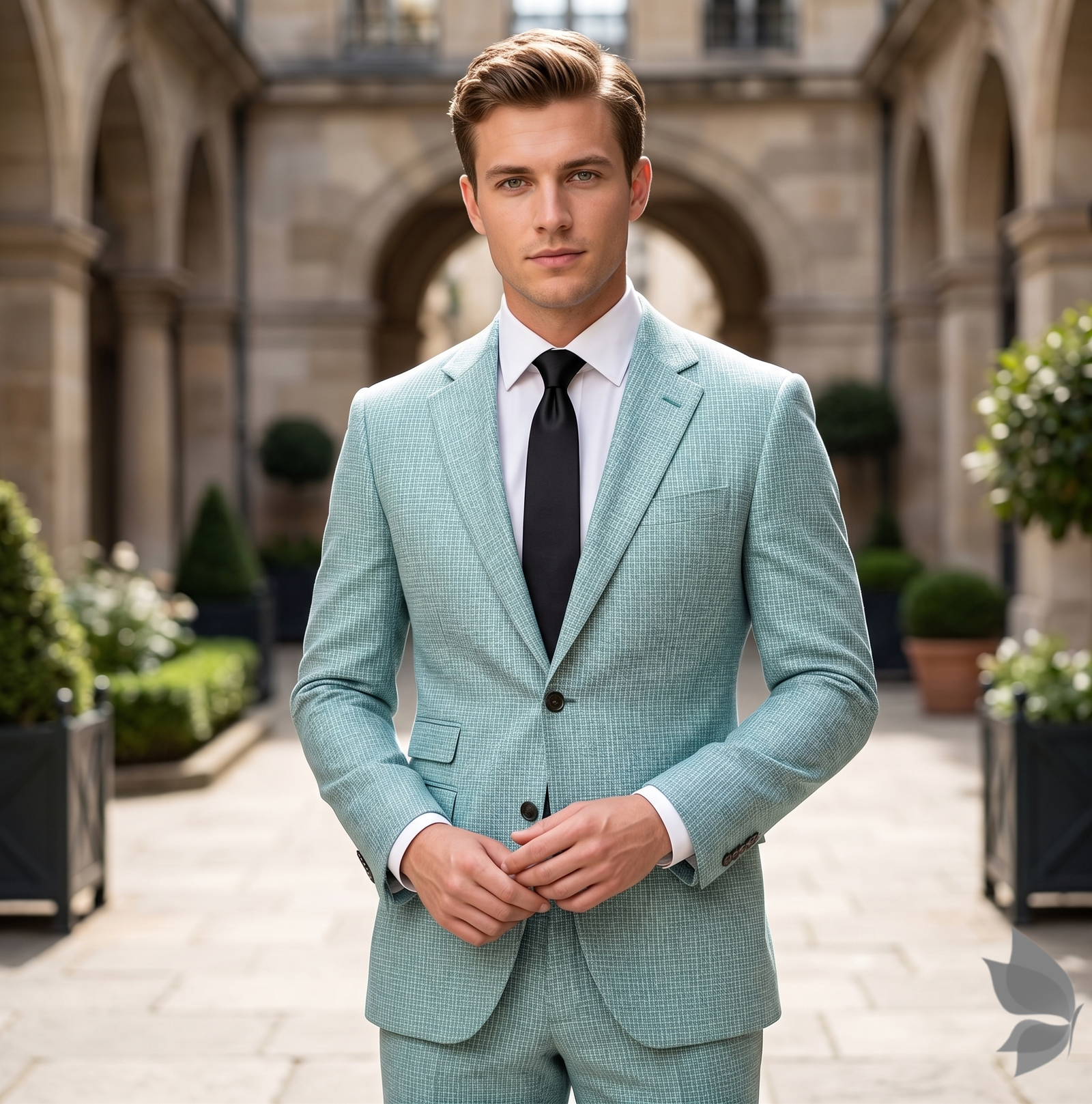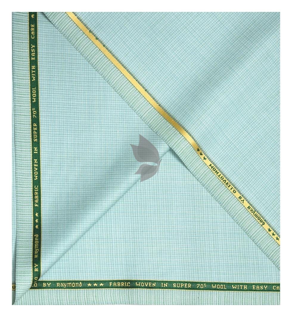 Raymond Super 70's Australian Merino Wool blended with 35% CATIONIC (Softness, Static Control, Drape) Checkered Pattern and Easy Care Green Colour Unstitched Suit Fabric of 3.25 Mts / VV2484