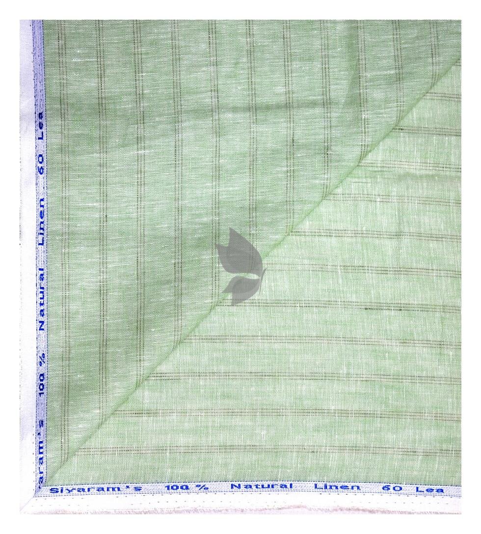 Siyaram's 100% Pure Linen 60 Lea Striped Green colour Unstitched Shirt Fabric of 1.60 mts / VV2512