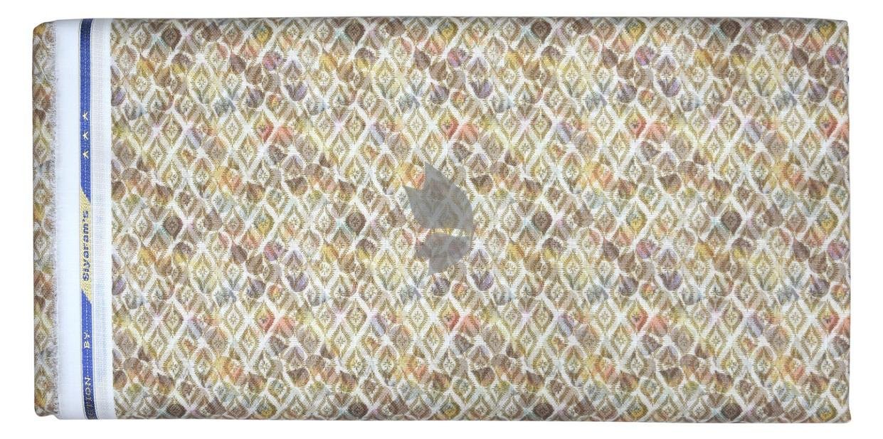 Siyarams festive collection printed pattern with hemp blended Gold (Amber) color unstitched men's Kurta / sherwani / top fabric of 2 meters / VV2305