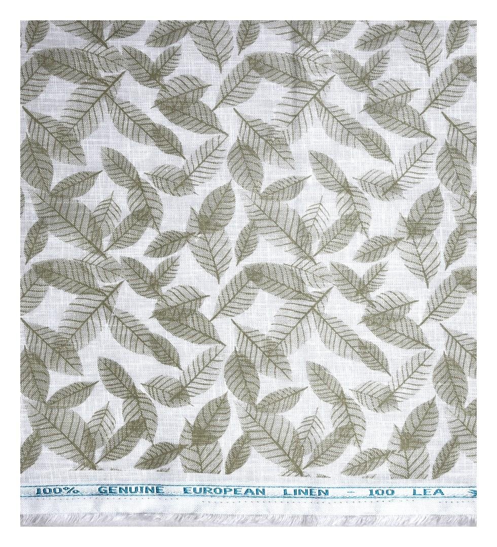 Weaves Empire 100% Genuine European Linen with 100 LEA count Green colour Printed Unstitched Shirt Fabric - 1.60 Mts / VV2194