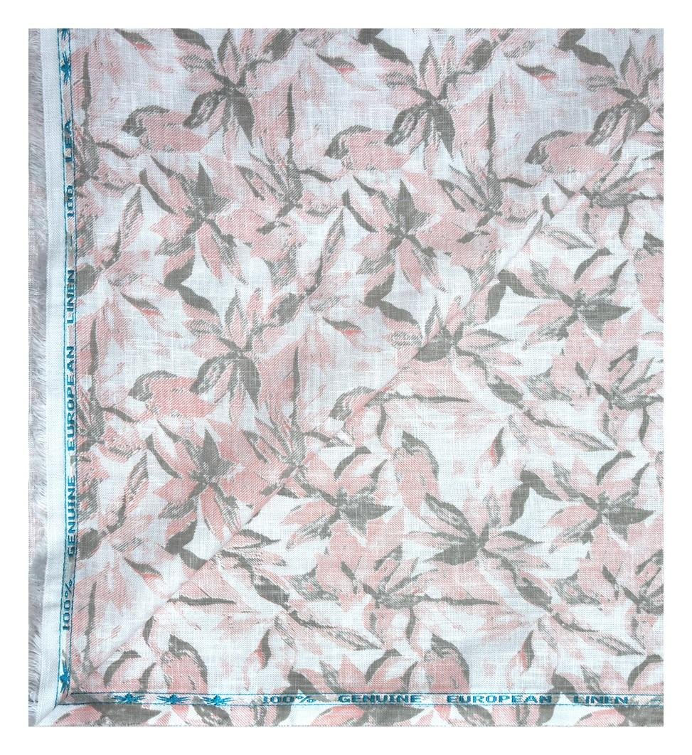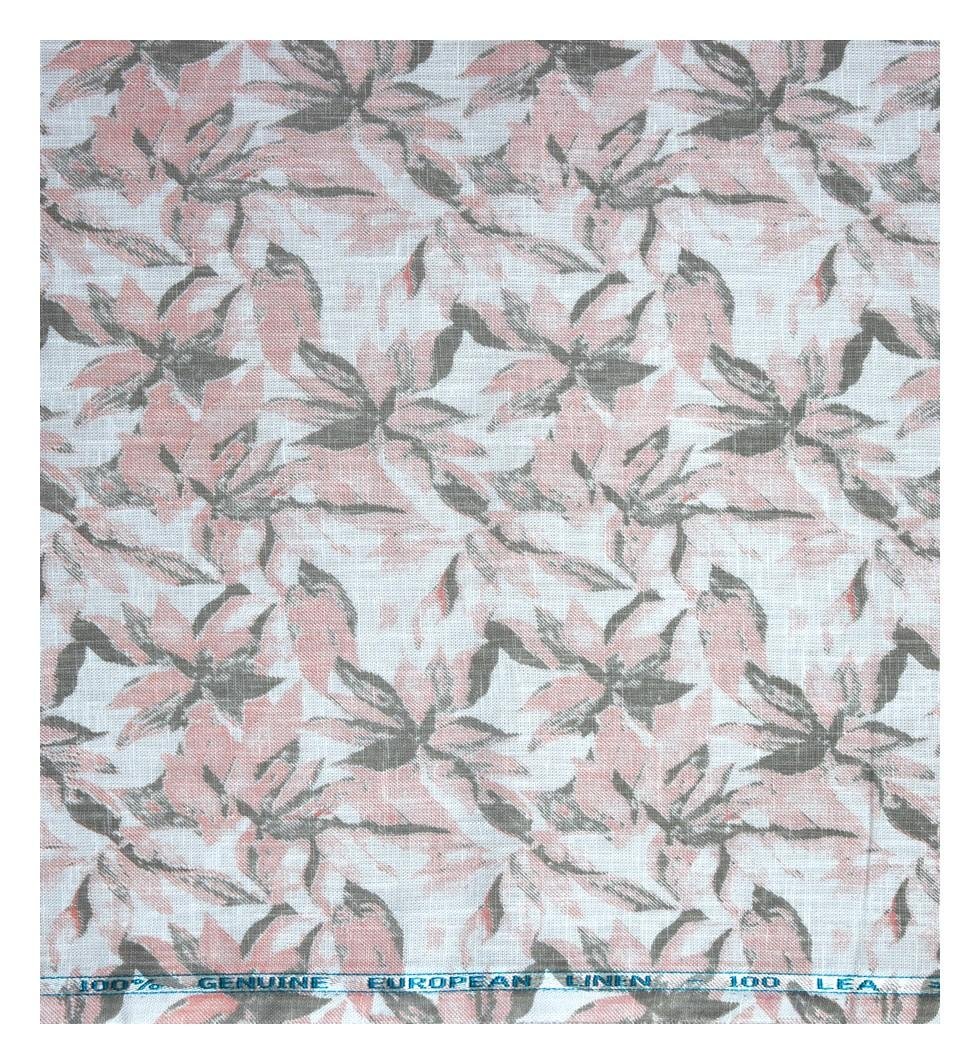 Weaves Empire 100% Genuine European Linen with 100 LEA count Peach colour Printed Unstitched Shirt Fabric - 1.60 Mts / VV2189